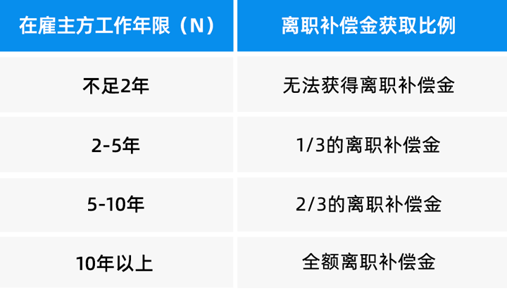(3) 在合法解除劳动关系的所有情形中,雇主都需支付离职补偿金。但在雇员因个人原因提出辞职的情况下,雇员最终可得离职补偿金与其工作年限直接挂钩。